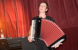 Isabel Neuenfeldt ist eine begnadete Sängerin, die sich mit ihrem Akkordeon begleitet. Ihre Lieder über den Schmerz und die Trauer der Überlebenden in den Kriegen, ihr Flehen um Frieden und die Hoffnung, die sich in der Friedensbewegung unterschiedlicher europäischer Staaten zeigte, beeindruckten die Zuhörenden.