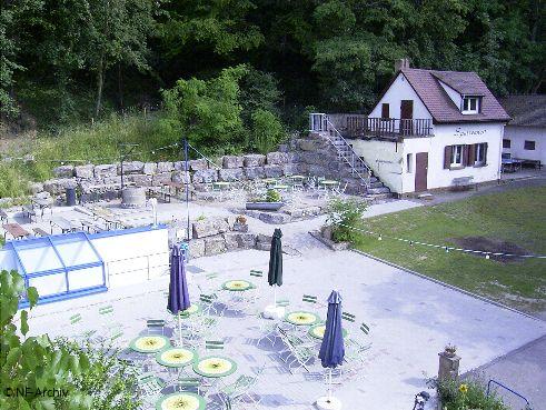 Bhf. Bruchsal, 2 km Fußweg (Richtung Karlsruhe) bis Ortsausgang beim Campingplatz, oder mit Stadtbahn S3 bis Gewerbliches Bildungszentrum (GBZ), 200 m zum Haus.