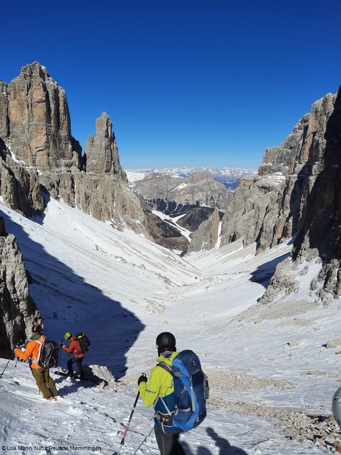 Die Tour durch die Dolomiten war eine sehr anstrengende und anspruchsvolle Durchquerung, mit nicht so optimalen Schneebedingungen. Vom Schwierigkeitsgrad ist sie vergleichbar mit den Ostalpendurchquerungen wie beispielsweise der Haute Route oder der Ötztal- und Ortlerdurchquerung. Wir konnten die Natur in vollen Zügen genießen, waren immer umgeben von steilen Felsen und der wahnsinnig schöne Blick zurück oder nach vorne hat uns vieles von den Anstrengungen vergessen lassen.
