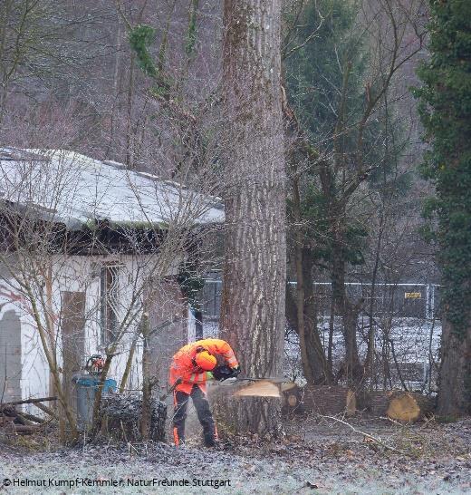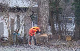 Parallel dazu wurden im Außengelände eine Pappel am Schuppen und eine Kastanie auf der Terrasse gefällt, die zunehmend Probleme bereiteten. Das Fällen der über 30 Meter hohen Pappel war schon eine spektakuläre Angelegenheit.